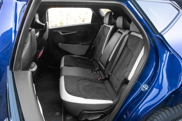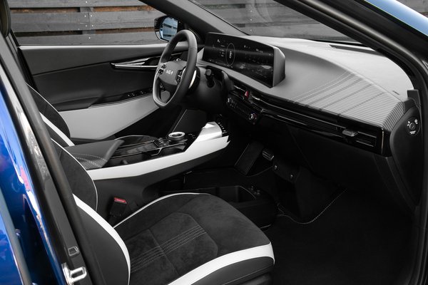 A sportosság persze nagyon relatív egy ilyen SUV-kupé keresztezésnek tűnő autó esetében. A Kia szabályozható lengéscsillapítókat használ, hogy a futómű közvetlenebbül érezhető legyen. Sport módba kapcsolva tovább keményednek a dolgok, és egészen durván reagál a gázadásra a villanymotor, nagyobb erő kell a kormányzáshoz és keményebbé válik a rugózása. Még az ülés tömése is keményebba Kiában, sőt, pár centivel mélyebbre is le lehet engedni, mint az Ioniq 5 esetében, és ez az egyikből a másikba ülve már normál üzemmódban is jól érződik.