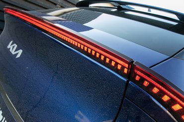 Hiába láttam korábban a fotóit, az életben valamiért nem annyira működik a formatervnek ez a laposítási törekvése. Az arányokhoz még azt is érdemes tudni, hogy az EV6 nemcsak magas, de hosszú is, körülbelül annyira, mint egy Skoda Octavia. A kerekei 20 colosak (igaz, létezik kisebb is), emiatt valójában olyan, mintha egy kisebb autót felnagyítottak volna. Érdekes, hogy a karosszéria ötajtós, mégsem kapott a ferde hátsó üveg ablaktörlőt: a tető végén, a légterelőbe vágott két nyílás hivatott lefújni a vizet esőben, más kérdés, hogy lassú haladáskor ez nem segít.