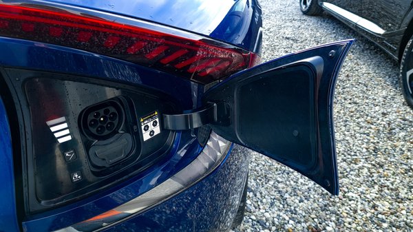 A fali konnektorról a nagy akkuméret miatt igen lassú a töltés, kiszámolni is fáj, hogy 77,4 kWh hány óra alatt sétál bele az akkuba egy fázisról, amiről maximum 7 kW töltési teljesítmény használható (azaz bő 11 óra), de ez nem reális háztartási konnektorról, inkább a 3,5 kilowatt. Már ha nem akarunk otthon minden villanyt, hűtőt, mikrót és egyebet kikapcsolni. Három fázisról 10,5 kW a maximum.