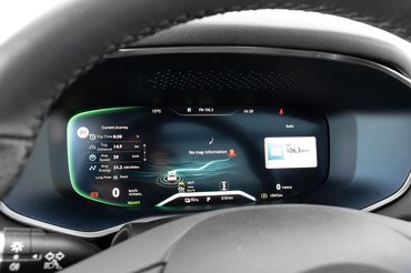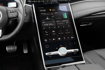 Magam részéről ezt is az igényességre törekvés jelének vettem, bár jobban szeretem magam állítani a befúvó levegő irányát. Szintén igényes a két első utas közötti teret szinte teljesen kisajátító érintőképernyő. A mérete önmagában tekintélyes, az átlója 50 centi, amivel számos európai ellenfelét maga mögé utasítja, és már-már a Teslák régiójában jár. Ráadásul finom a felbontása, ami mind az animációkon, mind a kamerák képének megjelenítésén jól látszik. És még a kezelése sem ördöngösség. A legfontosabb gombok mindig megtalálhatóak alul, és a többi kezelni valót sem varázslat megidézni a menüből. Az egyetlen hibája, ami azonban nem annyira elhanyagolható, hogy elég laposan, és egyenesen hátrafelé nézően állították be. Egy picit sem fordul a vezető felé, így jobban látja a hátul középen ülő utas, mint a vezető.