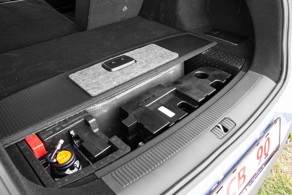 Amiben korántsem ilyen nagyvonalú a Marvel R, az a csomagtartó. Egy ekkora autóban a 357 literes csomagtartó kimondottan kicsinek számít. Ráadásul a próbált összkerékhajtású kivitelben a szokásos támladöntés az egyetlen bővítési lehetőség, ami viszont az utasszám csökkentését vonja maga után. A hátsókerék-hajtású kivitelben viszont szerencsére van még tartalék. Mivel elöl nincs motor, ezért ott jutott hely egy 150 literes láda kialakítására. A kettő együtt már elfogadható méret, bár a töltőkábelnek nincs külön helye, annak is ezen belül kell helyet találni.