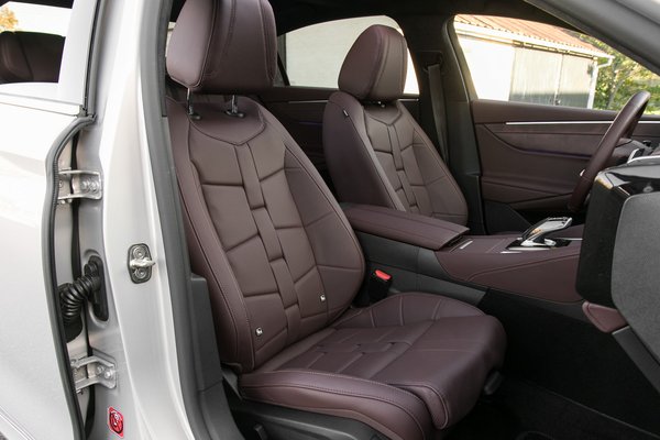 Hosszában egyébként tényleg bőven sok a hely, de elöl azt érzem, hogy ugyanazok a viszonylag keskeny és rövid ülések vannak benne, mint bármelyik Peugeot-ban, vagy mostanság már az Opelekben is. Az ülőlap első szelvénye előrehúzható, de ez nem ugyanaz, mintha az ülés valóban hosszú lenne, mert így az ember combja alatt megjelenik egy lyuk. Ezt nem szeretem a BMW sportüléseiben sem, igaz, a DS 9-é ezeket azért veri kényelemben.