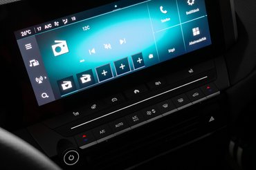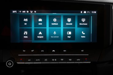 A megújult belső egészen elszakad a szokványostól, és ez nagyon jó dolog. Utólag megnézve a fotókat, meglepően kubista a sok sík lappal kidolgozott formaterv, de a műszerfal a valóságban nem ez a fő benyomás, hanem a látványosság. Láttunk már hasonlót az Opel Mokkában, de itt eggyel tovább vitték a dolgot: az extrábbik kivitel két 10 colos képernyőjét egyetlen közös üveg alá teszik („Pure Panel Pro”), de a nagy, külön kijelzők járnak az alapkivitelhez is. A klímának nincs kezelőpanelje, de a hőfokszabályzás és a belső keringetés kapott saját gombot. Minden mást az érintőképernyőn kell intézni a klíma menüoldalon, miután megnyomtuk az előhívására szolgáló gombot.
