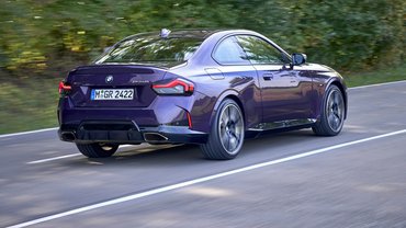 Természetesek a dimenziói és ettől önmagában is felszabadító terelgetni a szűk vidéki utakon. A 2-es BMW épp csak annyival izmosabb a nekem örök ideál E46 kupénál, hogy magabiztosabban tudjon feszíteni a kézisúlyok felett, de érzetre még mindig ez a tökéletes méretű kétajtós. Beülök, és néhány perc múlva már tökéletesen érzem magam a szorosan tartó sportülésekben, megvan a tömegközépponthoz közel eső, mélyre süllyedő pozíció, ahol a lábak előre nyúlnak a pedálhoz, a váltó és a könyöklő, meg a vaskos fogású M-es kormány pedig pont oda esik, ahová kell. A kilátás is olyan sportkupés, hogy borulnak felém a masszív tetőoszlopok, de oldalra és előre tökéletes, lelkesítő a gépháztető púpját nézni.