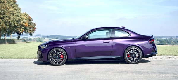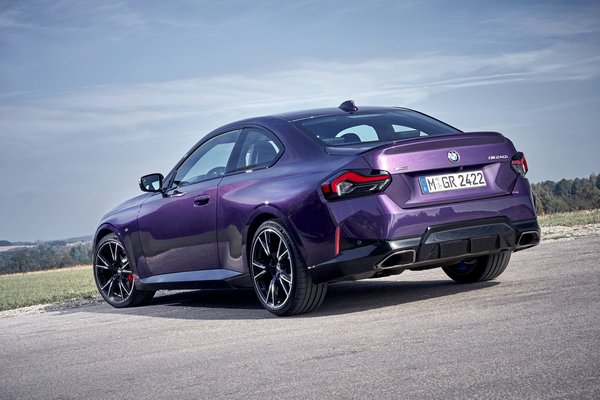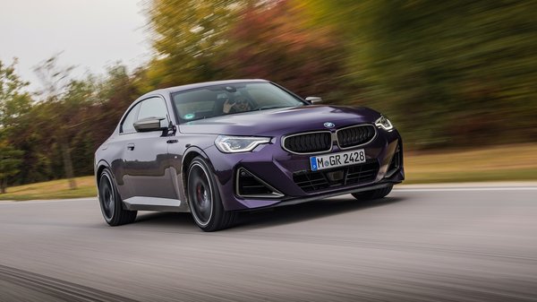 Lila színe miatt egyébként is imádtam ránézni, de a 2-es kupé arányai miatt szeretem igazán. A nagyon hosszú gépháztető és az M240i nagy felnijei mögött csillogó hatalmas féktárcsái eleve erős, hathengeres motort súgnak, de aztán jön a hátsó tengelyre terhelő kabin és a kacsafenékben végződő rövid csomagtérfedél. Szerintem nagyon súlyosan jó BMW kupé dizájn ez, ami ugyan nem ér soha az E9-es, a cápa 6-os vagy az 1 M Coupé nyomába, de temérdek biztonsági előírásnak megfelelni akaró, modern autóhoz mérten csinos.