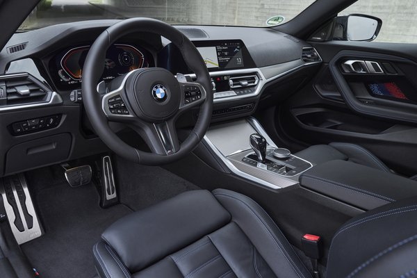 Nekem kicsit sok a háromszög mintázatúra nyomott műanyag az ajtókárpiton, de a beltér minden más része már ismerős, mióta megjelent a G20-as 3-as sorozat. A 2-es kupéban is pontosan az a vezető felé forduló, letisztult műszerfal van az elegáns kis klímapanellel a szellőzők között és az iDrive széles kijelzőjével a középkonzol tetején. A gondtalan és biztonságos utazáshoz minden vezetéstámogató rendszer adott az adaptív távolságtartós tempomattól a sávtartón át egészen a holttérfigyelő rendszerig. A 19 colos felniket és a lökhárítókat a kifogástalan képű 360 fokos kamerával lehet megvédeni parkolás közben. 18,5 milliótól kezdődik az M240i, 1,5 millió forinttal később meg már mindent tud, amit kell az okosságoktól a nagyobb féktárcsáig, nagyobb teljesítményű hűtésig, hogy pályanapon is minden rendben legyen.