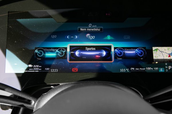 Négy tesztautó érkezett - különböző felszereltségű 580-asok mind - , a testes magyar grémium miatt ez jó fél óra vezetést engedett újságírónként. Annyi mindenképpen kiderült, hogy a majdani rendes teszten lesz vele meló bőven: csak a Hyperscreennel el lehetne szórakozni legalább egy órát. Ez az a 141 centi széles Gorilla Glass üveglap, ami az egész műszerfalat kelettől nyugatig beborítva három külön kijelzőt foglal magában: egyet a sofőr előtt (12,3 col), egyet középen (17,7 col), egyet pedig az első utas előtt (12,3 col). Lehet, hogy csak én látom bele, de mintha az első hűtőmaszkot tükrözné a beltérben.
