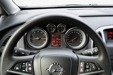 A konzervatív külsőhöz remekül illik az Opel érintőképernyő korszak előtti középkonzolja, ahol még egyzónás klímával és navigáció nélkül is négy tekerőt helyeztek el a számtalan gomb sűrűjében. A kormányon, sőt a bajuszkapcsolókon is sok a funkció, de azért nem végtelen, kis kereséssel mindent megtalálok, és megnyugtatóan minőségi élmény az ujjaimnak itt vándorolni. Talán ennél is meglepőbb, hogy a váltókar patent: bár Opelben sosem szokott lógni, de itt a váltási érzet is jó. Kár, hogy az 1,6 literes motor ereje azért még kevés a sportossághoz, mert a váltó társ lenne dinamikus volánművészkedésben is. Apropó kormány, ennek műanyaga elbírna egy bőrözést, de ennyi idő után még egyáltalán nem kopott, elfogadható a fogása. A monokróm kijelzők szépek és világosak, a kárpitok is tök jól bírták az első éveket. Jó lenne, ha még könyöklő is fért volna a felszereltségbe, mert ez amúgy egy újszerű, teljesen vállalható beltér.