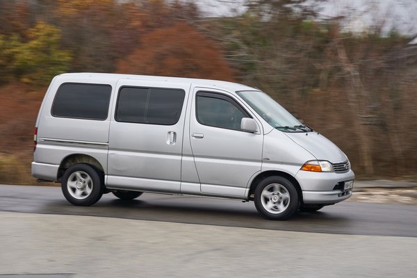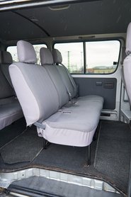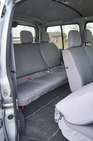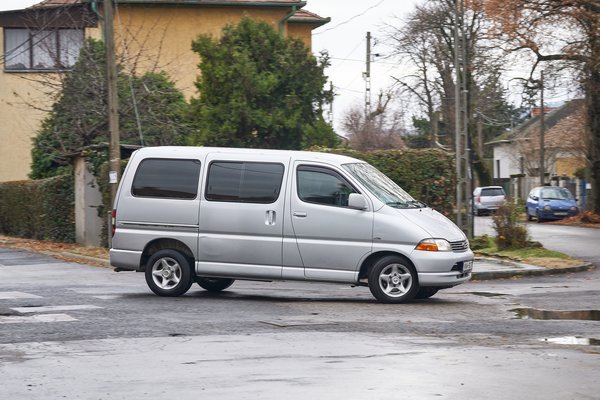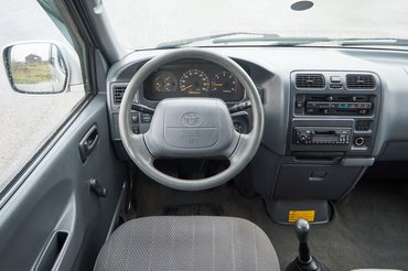 Az más kérdés, hogy a műszaki színvonal hiába magas, akkor is 1995-ben mutatták be ezt a Hiace-t. EuroNCAP töréstesztje nincs is, és akkoriban még mások voltak az elvárások. Egy mai kishaszonjármű tele van aktív és passzív biztonsági elemekkel, hogy a csendes és erős motort, a szinte személyautósan kárpitozott utasteret és a számtalan pakolórekeszt ne is említsük. Ezek innen mind hiányoznak: egy nagy kesztyűtartó és egy dupla pohártartó hajtható ki a középkonzolból, meg az utas előtt van egy ormótlan polc; biztonság terén mindenkinek fejtámlája meg három pontos öve van (ami azért nagy szó!) és egy-egy légzsák jut a sofőrnek meg az utasnak, de ABS, vagy a téli megcsúszásokban segítő ESP már nincs. És persze a motor is viszonylag hangos, ahogy a kerék- meg a szélzaj is. Szóval igényes, tartós, strapabíró konstrukció a Hiace, de a használó itt még kevésbé volt fontos.