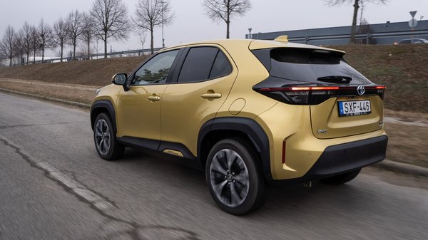 Az összkerékhajtásnak van egy olyan előnye is, hogy a többi változat csatolt lengőkaros hátsó futóműve helyett multi-link jár hozzá. Bár manapság már nem szokás támolygó romokkal rémisztgetni a vevőket, de a sima hibrid Yarisszal kapcsolatban erős emlékem, hogy kanyargós utakon kissé bizonytalan volt, és összehasonlítva kiderült, hogy nem olyan stabil, vezető-barát, mint egy Swift. A Yaris Cross 3,5 centi emelést kapott, emiatt érezhetően felkeményítették, hogy ne dőljön. Ez, meg a drágább futómű azonban azt eredményezte, hogy feltűnően stabil, magabiztos, dinamikus a mozgása, kanyarodik, mint egy kisangyal. Megkockáztatom, hogy a Ford Puma mellett se maradna szégyenben, pedig abból nem csak az ST-t jó vezetni.