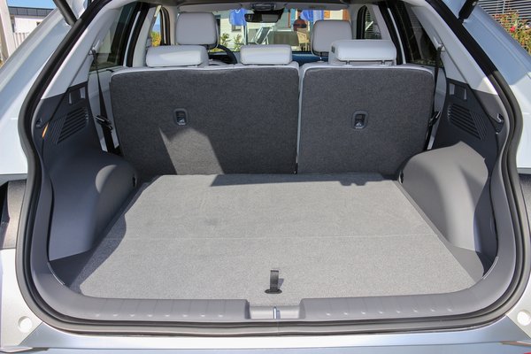 A három típus közül talán a Hyundai tűnik legkevésbé SUV-nak, jobban illene rá a crossover kifejezés. A formája egyébként csalóka, képen nézve olyan, mintha kompakt lenne, miközben minden méretével tökéletesen illik a másik két középkategóriás szabadidőautó mellé. A hossza 463,5 centi, a sorban a következő az Enyaq iV 464,9 centivel (+1,4), de a Model Y is egy kategória velük a 475 centis hosszával. Hosszúságuknál csak a szélességük és a magasságuk esik közelebb egymáshoz, a szélességük különbsége három, a magasságuké két centin belüli.
