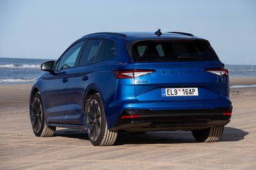 A két motor együttes teljesítménye 195 kW (265 LE), ami elsőre jól hangzik, de a Hyundai és a Tesla is erősebb ennél, ráadásul az Enyaq tömege sem kicsi. Az összkerékhajtás miatt elérheti a 2,3 tonnát, így a Skoda nem olyan virgonc, mint két riválisa. Gyorsulási ideje 0-100 km/h között 6,9 másodperc. A nagy tömeg a fogyasztásra is rányomja bélyegét, alsó hangon 4-5 kWh-val nagyobb, mint a csak hátsókerekes modelleké. Szerencsére összkerekes modell csak a legnagyobb, 77 kWh hasznos kapacitású akkuval rendelhető, és alaptartozék benne a 125 kW-os egyenáramú töltő (alapból egyébként 50 kW-os jár).