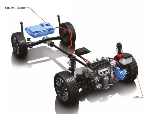 Az első benyomás kettős: az 1,4-es turbós motorhoz képest érzékelhetően gyengébb ez a szívó benzinmotor, viszont a váltó jobb, mint amire számítottam. Az talán zavaró, hogy a kart a P (parkoló) fokozatból kivéve könnyű a D fokozaton túlhúzni, és kapásból manuálissal indít az ember, amíg rá nem jön, miért bőg a motor. Ha visszatértünk a normál automata váltás D-jéhez, már rendezi sorait a váltó, és az elektromos motor segítségével egész tűrhetően hidalja át a váltáskor keletkező bólogatást és megtorpanást. Azonban nem is tökéletes: néha érezni, hogy a hirtelen változó gázkezelési stílusra nem reagál elég gyorsan, kicsit meg-megbicsaklik a folyamatos haladás. Amikor viszont előzni kezdünk, a nagy gázra olyan gázfröccsel vált vissza, hogy az még egy autóversenyzőnek is a becsületére válna. Az emelkedőn felfelé poroszkálás sem az erőssége a váltónak. Állítólag ECO módban néha hajlandó rövid távot tisztán elektromos hajtással megtenni, de a próbán sajnos nem tudtunk megfelelni a szigorú kritériumoknak. Bekapcsolható, fix elektromos mód nincs is – ekkora akkuval (0,84 kWh) nem is lenne értelme.