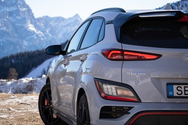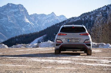 Elektronikusan vezérelt önzáró differenciálműve is agresszívabban húzza az ívre a Kona N orrát, a hátsó tengely pedig stabilan követi. A kormányán nagyon jól érezni, hogy a kovácsolt felnikre húzott gumik mennyire járnak tapadáshatáron és persze, van egy kis hajtási befolyás lecsengése is. Az 1510 kg-os Kona N-t nem csak akkor jó vezetni, ha mindent megold a gép, hanem manuálisba állítva lesz igazán jó élmény kanyarogni vele a Dolomitokban.