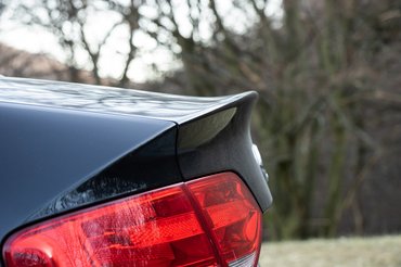 Imádom benne, hogy mekkora sleeper az egész, hiszen ez itt nem az RS 4 Avant, tehát nincs rajta DTM stílusban szögletesre rajzolt szélesítés és hatalmas, ovális kipufogóvégek meg a hörgő V8-as. Az S4 első pillantásra pontosan úgy néz ki, mint bármelyik másik fekete A4-es Audi, ezért rendesen keresni kell rajta a baljós részleteket, mint az átrajzolt hűtőmaszk és a kis S4 kitűzők. Króm a single frame kerete, meg a függőleges lamellák, de a vízszintesek már szürke színűek, ami mélységet ad neki. Azzal viccelődnek, hogy bontott tükör van rajta, de a selyemfényű alumínium árnyalat pont annyi kivagyiságot ad neki, amennyi kell. Minél többet nézegetem, annál jobban tetszik a diszkréciója.
