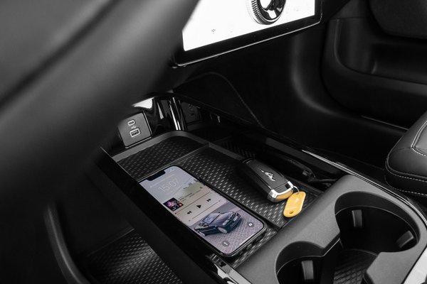 98,5 kWh-s lítiumion akkumulátor csomagjának nettó kapacitása 88,5 kWh és akár 150 kW-os egyenáramúval (DC) is lehet tölteni, ha van a közelben erre képes töltőoszlop, mondjuk egy Ionity. Elszánt adatbúvárok szerint nagyjából 10%-ig megküldi 150 kW körül, majd 40%-ig 100-zal, utána 80%-ig 70-80 kW töltést vesz fel. 11 kW-os töltőn 9 óra alatt szívja tele magát, így megenged egy kis túlórát a melóban. Töltés közben nem szórakoztat mindenféle játékkal vagy hasonlókkal, egy alap rajztáblán kívül nem sok lehetőség van elütni az időt, ha az embernél nincs egy okostelefon.