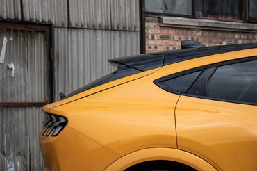 Amennyiben emelt szintű formatervezői házi feladatnak tekintjük azt, hogy az évtizedek óta menő Mustang jellegzetességeket fájdalommentesen kell ráhúzni egy 4,7 méteres bojler testre, akkor a Mach-E egy remek megoldás, mert egyszerűen menőn néz ki. Még akkor is, ha eltekintünk a zseniális narancsba hajló metál sárga színtől, mert Cyber Orange-ra (365 ezer forint: 1042 darab jegy, 38 bérlet) fújva még egy rozzant tálalószekrény is vágykeltő dizájner bútor lesz. A Mustang Mach-E-t nem vádolnám szépséggel, hiszen amíg létezik a klasszikus fastback kupé műfaja, addig nehéz elvonatkoztatni tőle, hogy ez itt mégiscsak egy méretes vekni kenyér, de az elektromos szabadidőautók közül egyértelműen felfelé ragyog ki minden vonala.