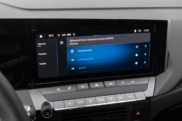 Ezen túlmenően az egész műszerfal is egyedi, beleértve a vezetővel szemben a 25 centi átlójú műszeregységet és a műszerfal közepét elfoglaló, szintén 25 centis érintőképernyőt. Utóbbi esetében örülhetünk annak, hogy a klímához, az ülésfűtéshez, valamint a főbb menüpontokhoz fizikai gombokat nyomogathatunk - egyébként épp ugyanazokat a funkciókat, mint a Peugeot 308-asban. A különbség csak annyi, hogy a 308-asban ezek közül egyeseket egy gombokat imitáló külön kis érintőképernyőn kell nyomkodni. A funkciók közül fontos az alapmenüt elővarázsoló ház alakú gomb, amivel akkor is visszatérhetünk a kezdetekhez. Amúgy a menü nem túlkomplikált, viszonylag gyorsan megtanulhatunk eligazodni benne. Aktív mobilhasználók annak is örülhetnek, hogy az Apple CarPlay és az AndroidAuto vezeték nélkül csatlakozik.