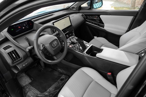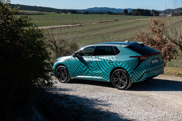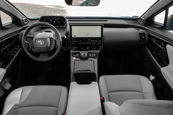 A trendeknek megfelelően egy kicsit lapított a teteje és lefelé ível a hátulja, hogy legyen benne egy kis kupés kecs. Vagy valami olyasmi. A bZ4X-et később még hét új bZ modell fogja követni, ezekhez jól jön majd a kimondottan villanyautókhoz fejlesztett, a bZ4X alapjául is szolgáló e-TNGA platform, amit a Toyota előrelátóan extra-modulárisra tervezett. A forma csalóka, mert a képek alapján nem tűnik olyan nagynak, a valóságban a méreteivel még a RAV4-re is ráígér: 4,69 méteres hosszával 9 centit, 2,85 méteres tengelytávjával pedig jelentős 16 centit. A bZ4X a Skoda Enyaq iV-nél 4 centivel hosszabb, a Kia EV6-tal centire megegyezik, a Mustang Mach-E-nél pedig 5 centivel rövidebb.