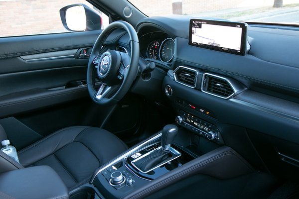 Megmaradt a sötét és elegáns beltér is, a legnagyobb újdonság igazából a friss, szélesvásznú (8:3) 10,25 colos képernyő és a mögöttes szoftver, szerencsére nem dadog, mint holmi Fordok. Apple CarPlay és Android Auto természetesen pipa, vezeték nélküli telefontöltő a váltó előtt szintén pipa. Nehéz eldönteni, hogy tudatos döntés vagy egyszerű spórolás eredménye, de ugyanúgy a Mazda-féle iDrive-tárcsával lehet irányítani az infotainmentet, mint az elődmodellben, érintőkijelző tehát nincs. Hm.