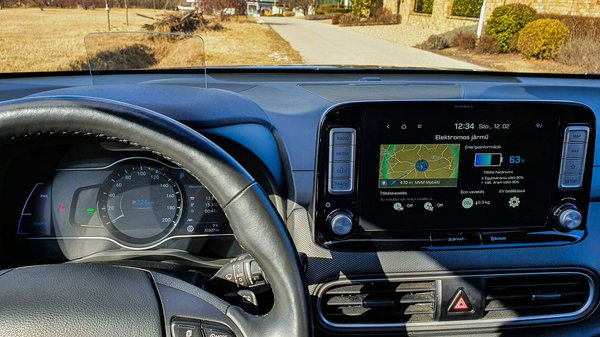 A hatótáv kardinális kérdés egy villanyautónál, ez a Kona Electric-nél nyáron, városban és autóúton, legfeljebb 110-zel, klímával körülbelül 460 kilométer. Télen ugyanez 22-23 fokra állított fűtéssel 330-340 kilométer. Mindig hűtök, fűtök, ezeken soha nem spórolok, és napi használatban - 150-200 kilométer, lásd a cikk elején - nincsen hatótáv para. A kijelzőn az érték egyenletesen csökken, nincsenek nagy ugrálások, tehát nem lesz a megtehető 60 kilométerből hirtelen csak 20. Autópályán 105-110-es tempónál nagyjából tartja a városra saccolt hatótávot. Ahogy gyorsulunk, úgy csökken a megtehető kilométerek száma.