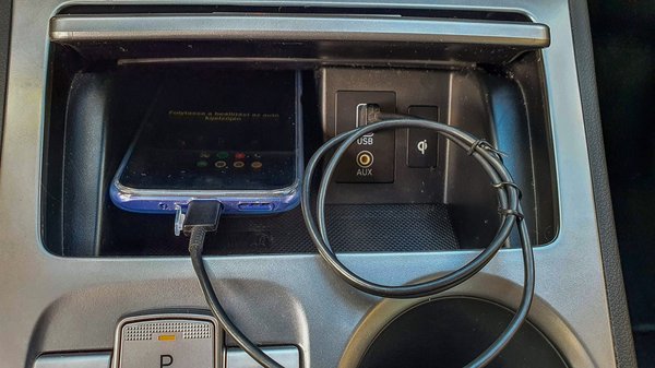 Ősi férfibánat, ha a két lyukból csak az egyik használható: az Android Auto (Carplay) vezetékkel működik, ez szerintem vállalható, bár menőbb a wireless. Két USB bemenet van az autóban, de csak az egyikről működik az AA, a másiknak csak (gyors)töltés funkciója van. A telefon viszont nem igazán fér el a kicsire szabott tartóban, ha a kábel be van dugva - ez elég béna.