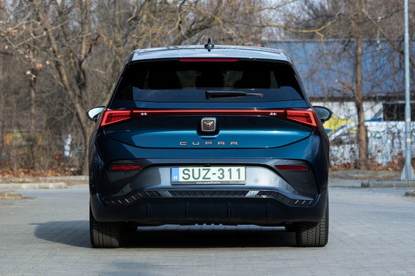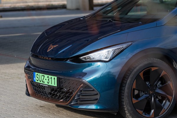 A Born és az ID.3 technikai hasonlóságairól Gajdán kolléga már írt, de nála a magyarországi kínálat tetejét jelentő 77 kWh-s változat volt az ideiglenesen plusz harminc lóerőt adó e-boost funkcióval, míg a most tesztelt autóba a kisebbik, nettó 58 kWh-s kapacitású akkut építették. Így is 1736 kiló (a 77 kWh-s akkuval majdnem két tonna), kompakt ötajtós létére többet nyom, mint egy full hibrid Ford Kuga, ami ugye egy értelmezhető méretű SUV, és a csomagtere sem 385 liter, mint a Bornnak. A 62 kWh-s Leaf már inkább vetélytárs, könnyebb is egy százassal, a csomagtere is 435 liter, ráadásul a Cuprával ellentétben a Nissannak előre is jutott tárolóhely. Mindenesetre ügyesen elrejti a háját, a hátsó kerekeket hajtó villanymotor 204 lóerejénél és 310 Nm-nél nem is kíván többet. Érdemes megjegyezni, hogy tíz éve még a pickupok 2,5 literes turbódízelei tudtak ennyit, nem holmi csicsás bevásárolókocsik.