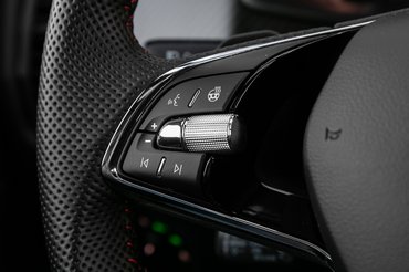 Apropó, komfort mód! Az RS kivitelek egyetlen valódi hátránya a Kodiaq esetében is megkeseríti az ember életét: a szánalmas V8-paródia műhang, bocsánat, a Dynamic Sound Boost. Minden egyes újraindításkor át kell kapcsolni normál módból valami enyhébb üzemmódba (a legjobb a Comfort) ahhoz, hogy ettől megszabaduljunk, nincs menekvés. Talán egy fokkal jobban sikerült a műhang, mint az Octavia RS esetében, ahol először mechanikai hibára gyanakodtam, amikor meghallottam. Itt erről nincs szó, lehet, hogy csak a nagyobb autóban jobban zeng, passzolom az okot, de a jó nem ilyen.