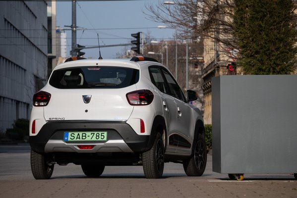 És hát az a karosszériamunka, mit mondjak... Jobb nem nézegetni a részleteket, esetlegesen odakent tömítések, kongó ajtók, burkolatlan csomagtérfedél, és ahogy a szögvasakkal alálógatták az akkucsomagot, azt is jobb nem nézegetni. A munka a Dongfenget dicséri, ugyanis hiába UU-val kezdődik az alvázszám, ez a Dacia nem román, hanem kínai, arrafelé mindenféle Dongfeng típusneveken is árulják. És még egy fontos dolog: az M. Richárd stílusú közlekedési partnereknek mindenképp meg kell adni az elsőbbséget, mert a Spring egycsillagos töréstesztet produkált az EURO NCAP-nál.