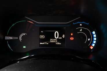 Ami a visszatáplálást illeti, ennek a mértéke nem állítható, mint a legtöbb elektromos autónál, viszont fékezéskor is először visszatermel a villanymotor, és elég természetes az átváltás a két fékezési mód között. Városi tempónál maximum 5 kW-os teljesítménnyel töltögeti az akkucsomagot, de 100 km/h fölött már eléri a 15 kW-ot is a visszatöltési teljesítmény. Sajnos az autó nem segít abban, hogy a használó kitapasztalja, hogyan lehetne még többet kihozni a gyárilag 230 kilométerre taksált akkucsomagból. Vagyis nincs utólag megnézhető fogyasztás-elemzés, diagram, csészelevél, napocska, vagy bármiféle jutalmazás, vagy tanács.