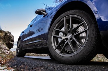 1600 méternél is magasabban fekszik az Alpokban a Col de Turini hegyi átkelő, melynek szűk kanyarjai és meredeken felfelé törő, rövid egyenesein nem csak örömautózók, hétvégi motorosok és bringások fordulnak meg, hanem a Monte Carlo Rally is. 1911 januárjában rendezték meg az első versenyt, azóta pedig csak a világháborúk és a ‘70-es évek olajválságához hasonló krízisek törték meg a sorozatot. A kanyarok előtt több szakaszon is látszanak a vastag gumicsíkok a rövidre vett féktávoknál. Négydugattyús fékek és 350 mm-es tárcsák vannak a Macan T-n elöl, de az opciós volfrám-karbid bevonatos (PSCB) tárcsákhoz (elöl 390 mm, hátul 356 mm) már fehérre festett, hatdugattyús, alumínium monoblock nyergek járnak. Ezekbe a sokadik merész féktávon is izomból bele lehet állni, mert rendesen az övre akaszt.