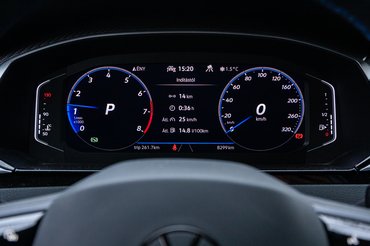 Jó létezni az Arteon R-ben, de csak addig, amíg nem kell a kijelzőhöz vagy a kormány gombjaihoz nyúlni. A fedélzeti rendszer sokszor lassú, sokszor pedig logikátlan - például az nem egyértelmű elsőre, hogy van, ahol alulról felfele húzva lehet plusz funkciókat előhozni egy menüpontban -, ezt pedig temérdek érintőgombbal súlyosbították. A feláras Harman/Kardon hifi például zseniálisan szól, de a zenét semmilyen dedikált gombbal nem lehet megállítani. Nagyobb léptékben hangosítani vagy halkítani a legkeservesebb: a kijelző mellett és a kormányon is csak sík érintőgombokkal lehet ezt megtenni, sőt, a hangerő csúszkáját se lehet ujjbeggyel húzni a kijelzőn egy nagyobb hangerőváltoztatás reményében. Ennél is bosszantóbb, hogy a klímát is csak érintőgombokkal lehet vezérelni.