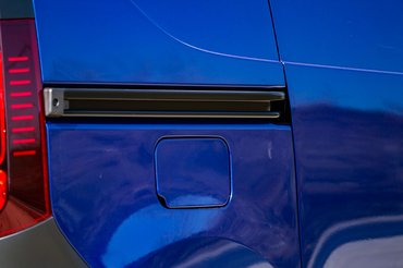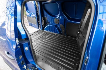 191 centi hosszú a padló, és a teljes terhelhetőség 650 kiló, benzines esetében 780. Ebben a konkrét darabban nem volt, de rendelhető beltér burkolat is. Utóbbi akkor hasznos, ha olyan dolgot szállítunk, ami hajlamos nekiütődni a lemeznek, mert már most látszott néhány sérülés, amit feltehetően egy eldőlt szerszám okozott. A padló viszont kivehető, ami akkor lesz jó, ha alaposan kell takarítani. Ettől eltekintve, még az emelőt is pőrén rögzítették, de legalább könnyű elővenni. A hátsó ajtók természetesen kiakaszthatók, ami nem azt jelenti, hogy dühösek lesznek, hanem 180 fokbanoldalra hajtva nem akadályozzák a bepakolást. Az oldalajtót eltolva pedig több mint 71 centis újkapu keletkezik a bámuló borjaknak. És akad rögzítő fül is bőséggel.