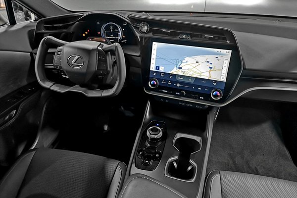 A Lexus ezekkel akár le is tudhatta volna a kötelező gyakorlatot, azonban új elektromos autójuk tud valamit, amit más valóban nem. Sem az Audi, sem a BMW, sem a Mercedes, sem a Porsche, sem a Tesla, és egyáltalán, egyik nagypályásnak tartott autómárka sem. Ráadásul ez nem egy látványelem, hanem igazi műszaki újdonság. A steer by wire kormányzás, amelynél a kormánykerék és az első kerekek között semmilyen mechanikus kapcsolat nincs, kizárólag elektromos. A kormánykerékkel kiadott parancsok elektromos jelekké alakulnak, azok vezetékeken keresztül jutnak a kormánygéphez, ami végül a megfelelő mértékben kitérítik az első kerekeket.