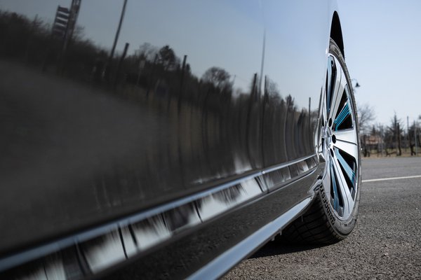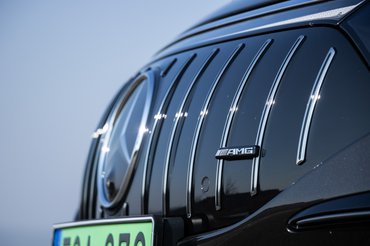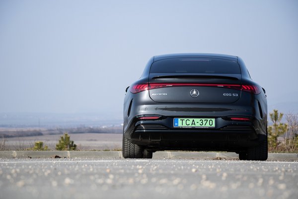 Nincs az EQS 53-on négy króm végből zsírosan hörgő nyolchengeres turbómotor, az AMG-t mindössze a csomagtérajtón ülő kis szárnyról és a zongoralakkba nyomott Panamericana rácsról lehet felismerni. A dupla lamellák között nem szippantja mohón a levegőt, hiszen a hűtésre elég egy kis nyílás a lökhárítóban, különben is rontaná a világelső aerodinamikát. 0,20 az EQS légellenállási együtthatója, így minden szériaautónál hatékonyabban hasít végig rajta a menetszél. Ez nem csak azért hasznos, mert tényleg elképesztő csend van benne autópályán is, hanem a suhanáshoz sem kell annyi energia, mintha egy G-osztály homlokfelületét tolná a hajtás.