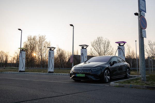 Nem csodálkozom, hogy a Volkswagen vezére, Herbert Diess csalódott volt az Ionity-vel kapcsolatban, mert a négy töltőoszlopból egy nem volt hajlandó kommunikálni az EQS-sel, a másik kettő képernyőjén pedig azonnal látszott, hogy működésképtelenek. Egyetlen oszlop maradt talpon, az viszont a csatlakozás után azonnal felzúgott, és a tetőponton 140 kW felett töltött, így egy dobozos kóla komótos elfogyasztás alatt 50 alól 80% fölé szívta az akkumulátort.