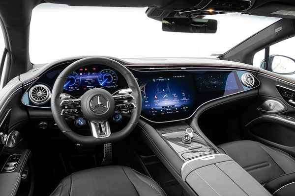 Szoftveres változásokon túl a hardveren is dolgozott az AMG, újratekercselték az állandó mágneses szinkron motorokat, hogy nagyobb áramerősséget és fordulatot bírjanak el (tengelyenként egy villanymotor adja az összkerékhajtást). Sport módokban hanggenerátorral próbál sportos hangulatot csinálni az EQS 53, de itt a karbon-kerámia fékek (1,6 millió forint), a 10 fokot tekerő hátsókerék kormányzás és a jó fogású kormány mégis észrevétlenek maradnak.