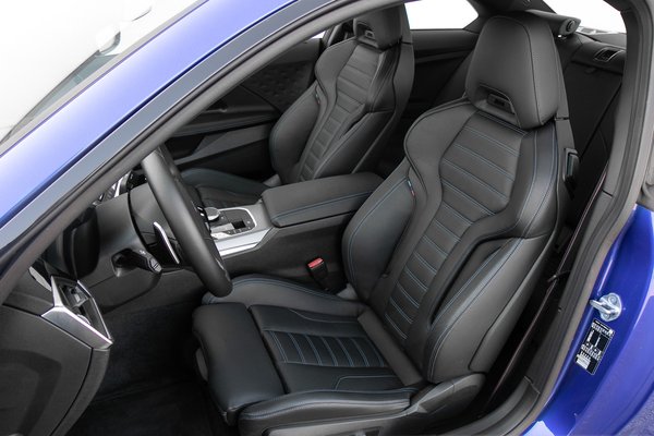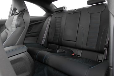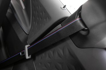 Ami meglepett még, az a hagyományosan vesekőeltávolító M-csomag, ez a 2-es Coupé egészen jól rugózik vele, miközben eszement stabil is. Van persze kék csík az övön, kék cérnás varrás a bőrön, meg olyan vaskos kormány, hogy a kisebb kezűek át sem érik a karimáját, no meg persze a kötelező egybeszabott ülés. Ami mellesleg annyira nincs egybeszabva, hogy a fejtámlája ne lenne állítható, ráadásul villanymotorral. Szóval a dizájn oltárán ezt nem feltétlenül kellene beáldozni, ahogy például a Skoda csinálja az RS modelleknél.
