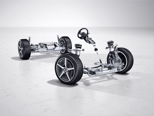 Mivel nincs elöl hosszú sor 6 vagy V12, sőt, a ma vezetett 350+ változatban egyáltalán semmilyen motor se, így messzire előre nyúlhat az A-oszlop. Ezt hívta a Chrysler az ezredforduló környékén cab forward dizájnnak, a Mercinél one bow, vagyis egy ív a kupola neve. Ettől elvileg még tágasabbnak érződik a beltér, de ez nem.