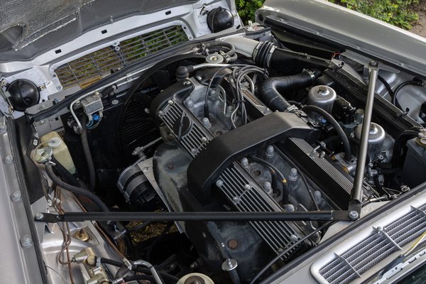 Apropó, motor. A Jaguar 1971-ben bemutatta második saját motorját, az 5,3 literes V12-t, ez persze utat talált az XJ orrába, így az XJ-C-be is. Ám Zsolt autója hathengeres, 4,2 literes, két SU karburátorral. A gyártása idején még mindig modernnek számított a könnyűfém hengerfejes, DOHC, kereszt-öblítéses, sorhatos XK motor, amiből 170 lóerőt ígért a gyár. Jellemző, hogy ezt már 4500-as fordulaton kitolta, tehát itt finom, nyugodt karakter, pedig versenyváltozatai szeretnek forogni. Mögötte háromfokozatú Borg-Warner automata lakik, ami igazából nem baj, mert így eredeti – sok manuális XJ-C valójában átépítés. Például a legendás angol újságíró, Harry Metcalfe elképesztő gonddal restaurált, sportfutóműves V12-es kupéja is.