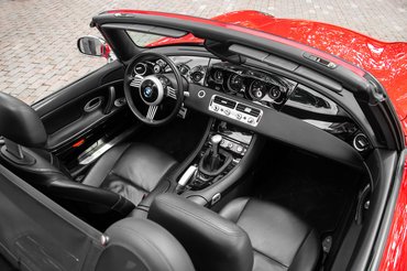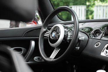 Utasterében szintén minden elem a Z8-nak készült, így tényleg csak néhány ismerős alkatrész bukkan fel benne. A kétüléses roadster műszerfala szimmetrikus, mert kicsit a vezető felé fordítva, de középen van a négyórás műszeregység, alatta ezüst tekerőkapcsolók és bőrözött indítógomb. A rádiót és más funkciókat egy felnyitható panel alá rejtették a középkonzolon, a letisztultságra pedig annyira ügyeltek, hogy ablakemelő kapcsolóból is csak egy van az ajtón, egy másikkal pedig váltani lehet a funkcióját. Kormányának küllőit négyesével rendezett fém pálcák adják, amik olyan vékonykák, hogy szinte láthatatlanok, egyből szem elé kerülnek az ezüst végű bajuszkapcsolók.