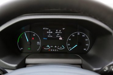 Valószínűleg a Fordnál sem gondolják, hogy különösebben nagy forradalmat indítana el az elektromos teherfuvarozás, így az egyik legfontosabb dolgot sem lehetett kipróbálni: milyen megrakott puttonnyal? Ez egyrészt a menetteljesítmény, másrészt a fogyasztás szempontjából lett volna érdekes. A hivatalos WLTP adatok szerint a maximális hatótáv a legjobban fogyasztó modell esetén 317 kilométer. Nálam a fogyasztás a legnagyobb kasznis, L4H3 változatnál 27 kWh/100 km volt. Az akkupakk 68 kWh-s, amiből az jön ki, hogy ha ezt a fogyasztást tartja az E-Transit, akkor nagyjából 250 kilométeres hatótáv fért volna ki. Ezeket az adatokat úgy kell nézni, hogy igyekeztem a lehető legértelmesebben közlekedni, nem toltam ki a Transit szemét. Mástól tudom, hogy full támadásban 40 kWh/100 km fölé is vihető, de ahhoz extrém kemény személyiség kell, minimum elit kommandós háttérrel, mert egyébként nem könnyű elviselni az állandó verbális abúzust, amivel az autó terrorizálja.