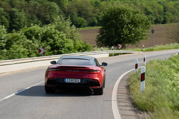 Annyira szem előtt van minden, hogy könnyű nyakig merülni a technikában, hiszen az elöl 256 széles gumik mögött ott a kettős keresztlengőkaros futómű, adaptív lengéscsillapítókkal és a vékony küllős fekete felniket is teljesen kitöltik a hatdugattyús nyergekkel szorongatott 410 milliméteres karbon-kerámia féktárcsák. A felfüggesztés elemein látszik, hogy iszonyatos erők téphetik versenypályán, pedig a DBS-sel a szerpentineken átfűzött utazás a legízesebb.