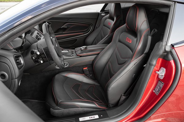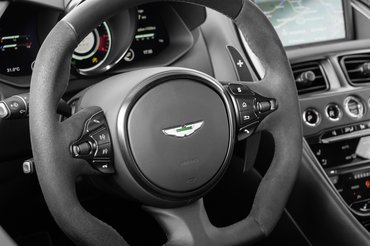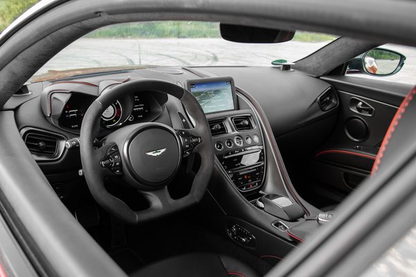 Finom ékszer a karbon gépháztető Superleggera felirata, amivel a milánói Carrozzeria Touring Superleggera karosszériaműhelyre utal. Az olaszok készítették a ‘60-as és ‘70-es évek legkönnyebb Aston Martin kupéit, melyek közül kétség kívül az 1,5 tonnás DB5-ös a legismertebb. Szárazon 1,7 tonnás súlyával a DBS messze nem szellőben lebegő tollpihe, de még így is könnyebb, mint a Mercedes-AMG biturbó V8-asával szerelt DB11-es.
