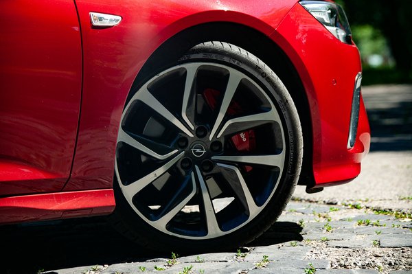 Szerencsére a fordulékonyság és a kormányzás egy kicsit visszacsorgat a sportosságból: sokkal könnyebbnek és agilisabbnak érződik az Insignia, mint amit a méretétől és a súlyától várnánk. Nagyon durván elfordítva minden módban túrja az orrát – a gyárilag Pilot Sport 4S-ek ellenére is – , de ahhoz tényleg olyan tempóban kell behajítani a kanyarba, ahogy azt ép élméjű ember utcán soha nem teszi. A vezetési élmény alkotóelemei közül kiemelkedik a fék, amit a Brembo szállít, és akkora tárcsák és nyergek alkotják a rendszert, ami nem is olyan rég még egy 911-esen se lett volna gáz. Az adagolhatóság hibátlan, és a fékerő is olyan, hogy a szemünk ki akar esni.