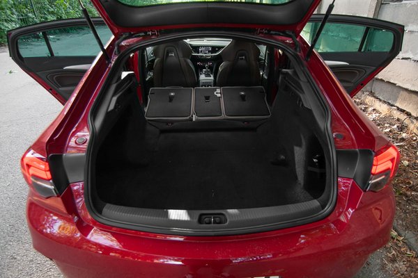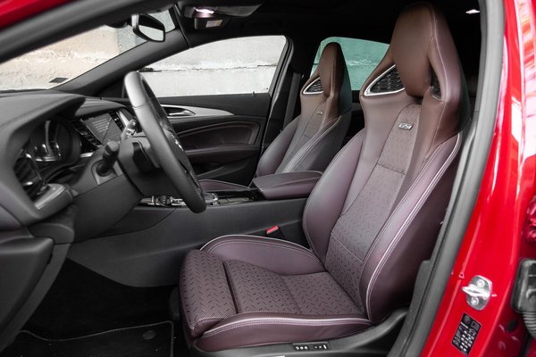 A legjobbak az első lámpák, amik nagyot szigorítanak az autó orrán, a fölöttük húzódó él pedig mercisen túlfut rajtuk és a díszrács irányába mutat. A hátsó nem pirít akkorát, mint az eleje, ami főleg abból fakad, hogy sok gyártó nem tud mit kezdeni a lámpákkal, amik itt is kicsit olyanok, mintha csak oda lennének téve valahogy, nem követik igazán a formát. A GSi hatalmas, 20 colos, csodásan filigrán felnijei szintén óriásit dobnak az összképen, ami már az alapváltozatnál is remek. Egy nyúlánk, lejtős tetejű szedán, ami optikailag nagyon lapos és van egy elegánsan nagyautós kiállása. Ezt akár el is ronthatja egy erőltetett sportosítás, de a GSi esetén annyira jó arányérzékkel nyúltak hozzá a részletekhez, hogy a sportos elemek még inkább kiemelik az Insignia formai erősségeit. A narancssárgás lecsengésű bordó szín pedig egészen egyszerűen tökéletes: hibátlanul kiemeli a részleteket és a fény-árnyék játékokat, miközben eleve pompásan áll még egy ekkora autónak is.