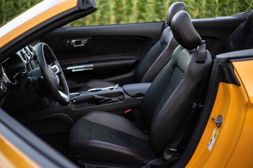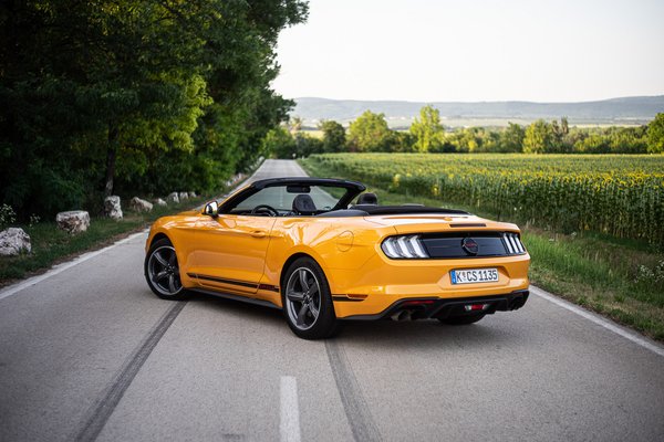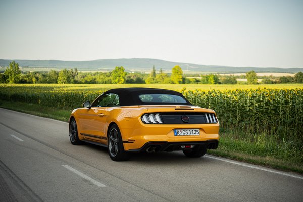 Ha a ponyvatető merevítéseit elfedő, kétoldalt bepattintható műanyag elemet nézem, akkor például sok, amikor pedig lepadlózom, és az ülésbe préselődve vigyorgok, akkor pedig tulajdonképpen baráti. Az elvárt színház tökéletes, ezt a Mustang régóta tudja, és most a díszleteken is csiszoltak olyan apróságokkal, mint a nagyobb első légterelővel és az opcionális első-hátsó légbeömlőkkel.