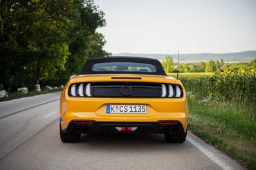 Az agyam valahol a Ford szalon klímás belsőterében maradt a papírmunka felett görnyedve, amikor a déli verőfényes napsütésben végre rárobbantottam a világra a Mustang ötliteres V8-as szívómotorjának hangját. A koncertet kiegészíti a négy kipufogócső hátul, akár egy jól összerakott nagyszínpadra való hangosítás. Fontos pillanat ez az ember életében, direkt erre az alkalomra előre összeraktam egy California Special playlistet, de végül nem vitt rá a lélek, hogy elindítsam.