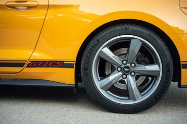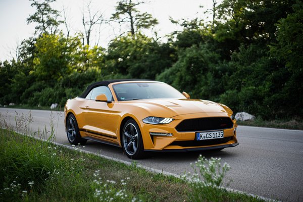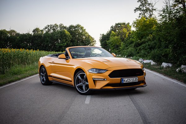 Nincs titkolózás és szerénykedés, az oldalcsíkok mellett a hűtőrács jobb oldalán, valamint a hátsó lökhárítón középen is helyet kapott egy GT/CS felirat, hogy a nézelődők könnyen be tudják azonosítani. A California Special kivitel csak kabrió verzióban létezik, és valójában a Ford michigani üzemében készül.