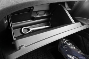 A vezetőfülke a kategóriában a jobbak közé tartozik, de nem a legjobb: egy Transporterben például jobban ülök, kényelmesebb és valahogyan tágasabb is. A raktér fala behatárolja a lehetőségeket, a középkonzol is zavaróan közel esik a térdhez, illetve az ülés is kényelmetlen - hiába került bele az 56 ezres felárú komfort vezetőülés, sehogyan sem sikerült jól beállítani, és a rövid ülőlap sem támasztja alá kellemesen a combot. A praktikus apró részletek viszont rendben vannak, mert hiába nem játszottak ki minden lehetőséget, nincs lehajtható asztalka vagy csipeszes irattartó, de van bőven zseb és tároló , például a másfél literes palacknak is jut hely az ajtózsebben. A napi teendőkhöz szükséges dolgoknak, mint a menetlevélnek, a telefonnak és a tollnak mind van végiggondolt helye, a kezelőszervek pedig mind egyértelműek és logikus elrendezésűek.